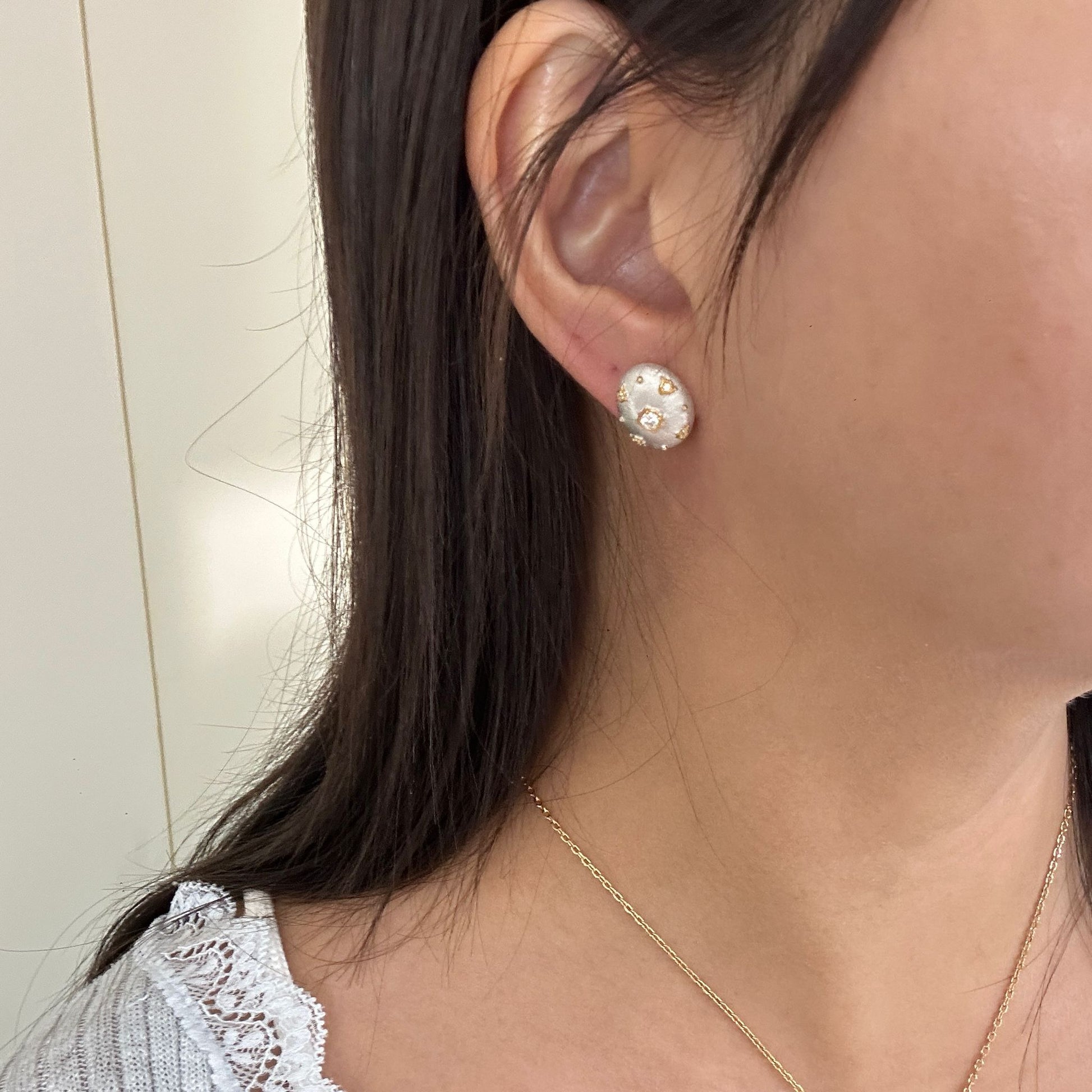 Inspired by vintage medallions and celestial motifs, the Celestial Bloom Stud Earrings are crafted from high-quality 925 sterling silver and finished with intricate raised floral engravings and a sunburst texture. Each pair features a delicate center stone that catches the light with every movement.