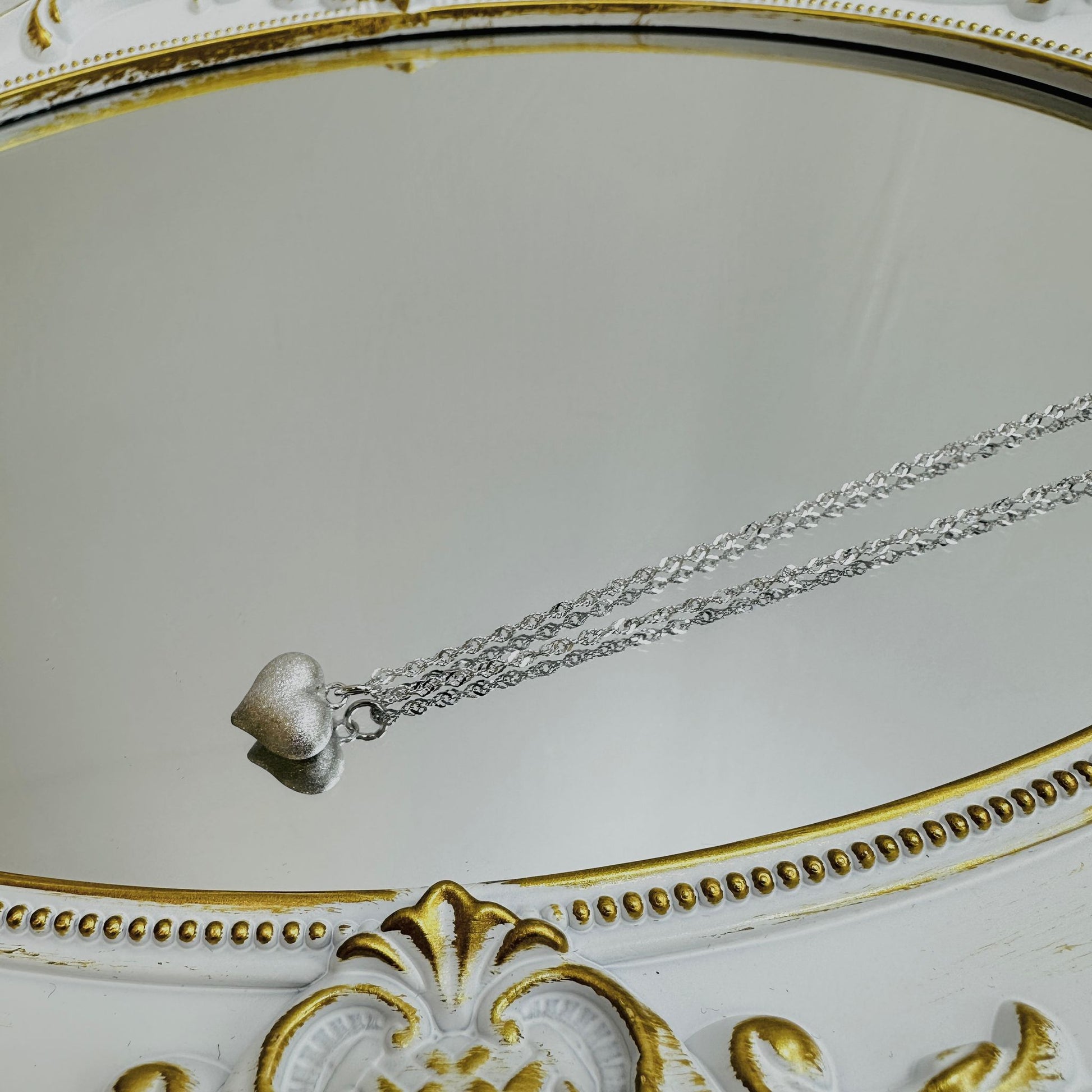 This necklace features a puffy heart pendant with a frosted matte finish that adds a soft glow to your neckline. Made with 925 sterling silver, it's the kind of everyday piece that still feels a little special. Whether you're layering or wearing it solo, it's a subtle nod to love — and style.