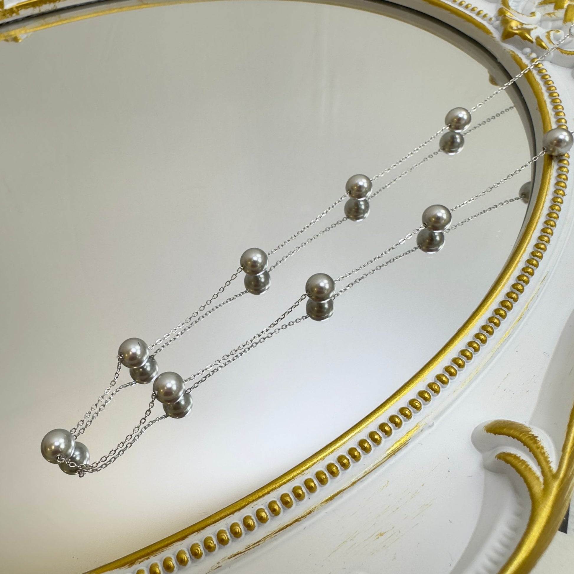 Crafted with two delicate silver chains and perfectly spaced white pearls, this piece adds soft sophistication and dimension to any look.