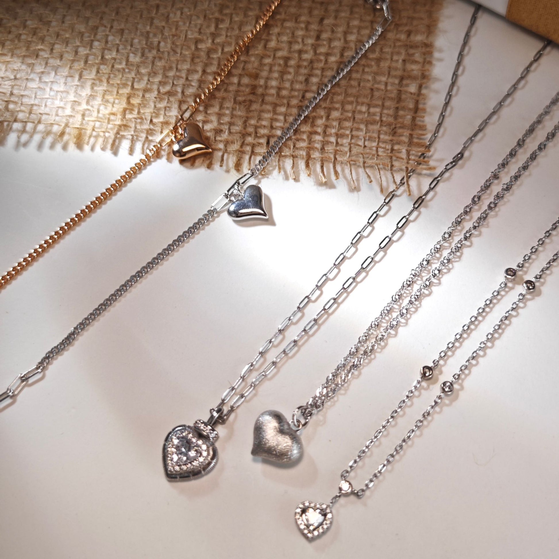 ⢠Your choice of one heart-shaped necklace (from 3 designs shown)