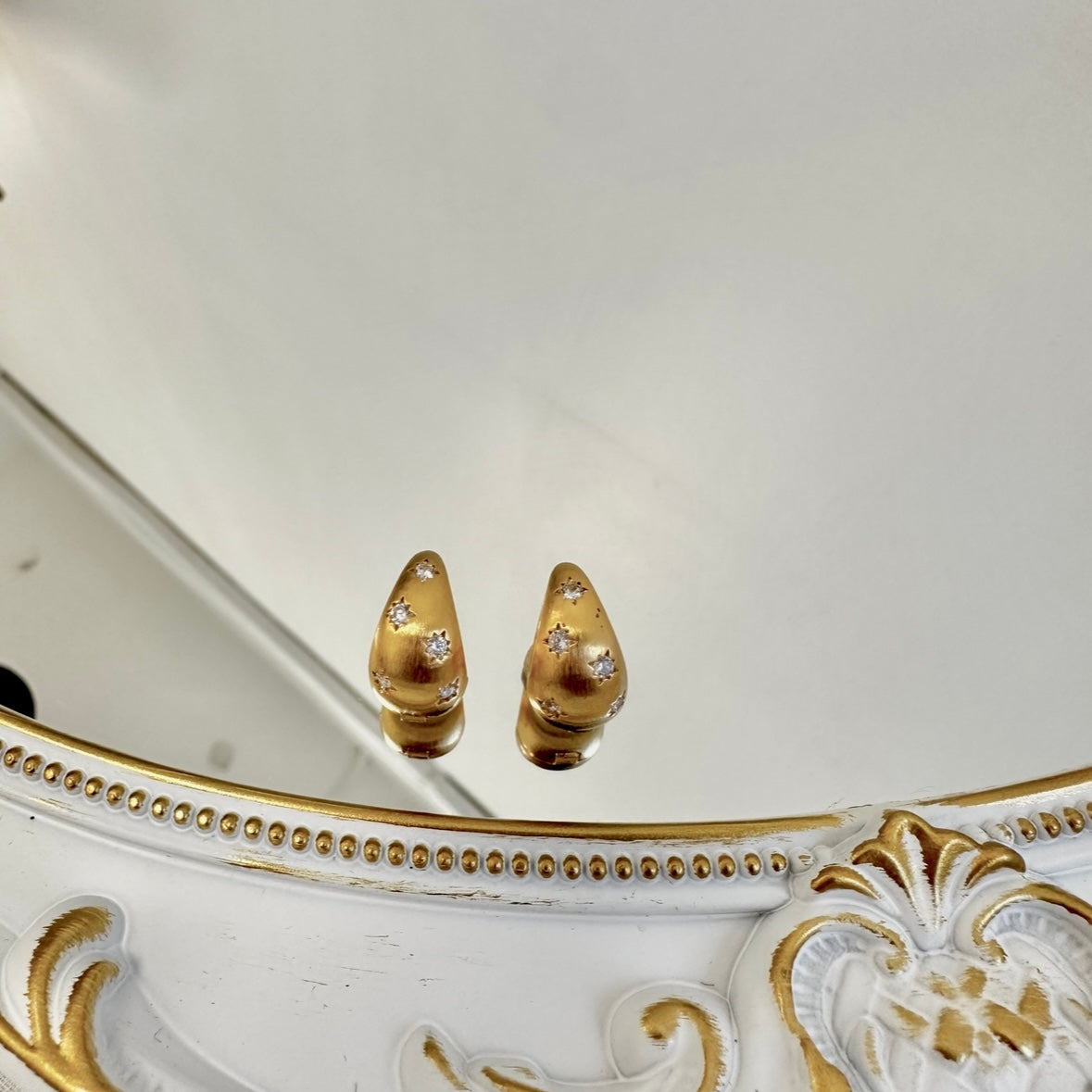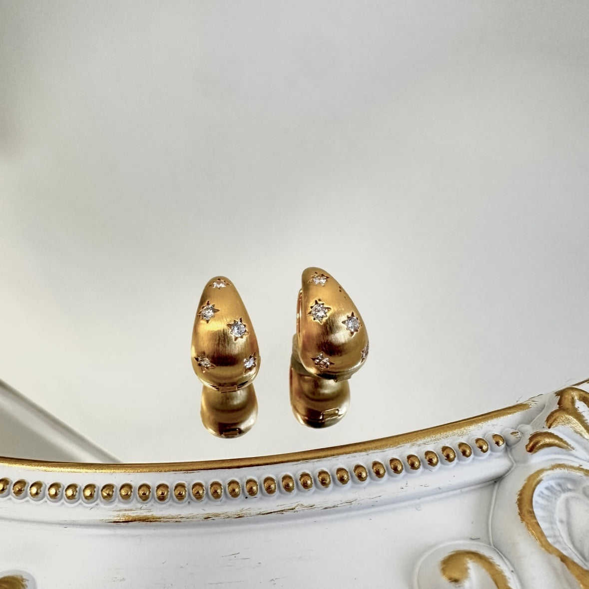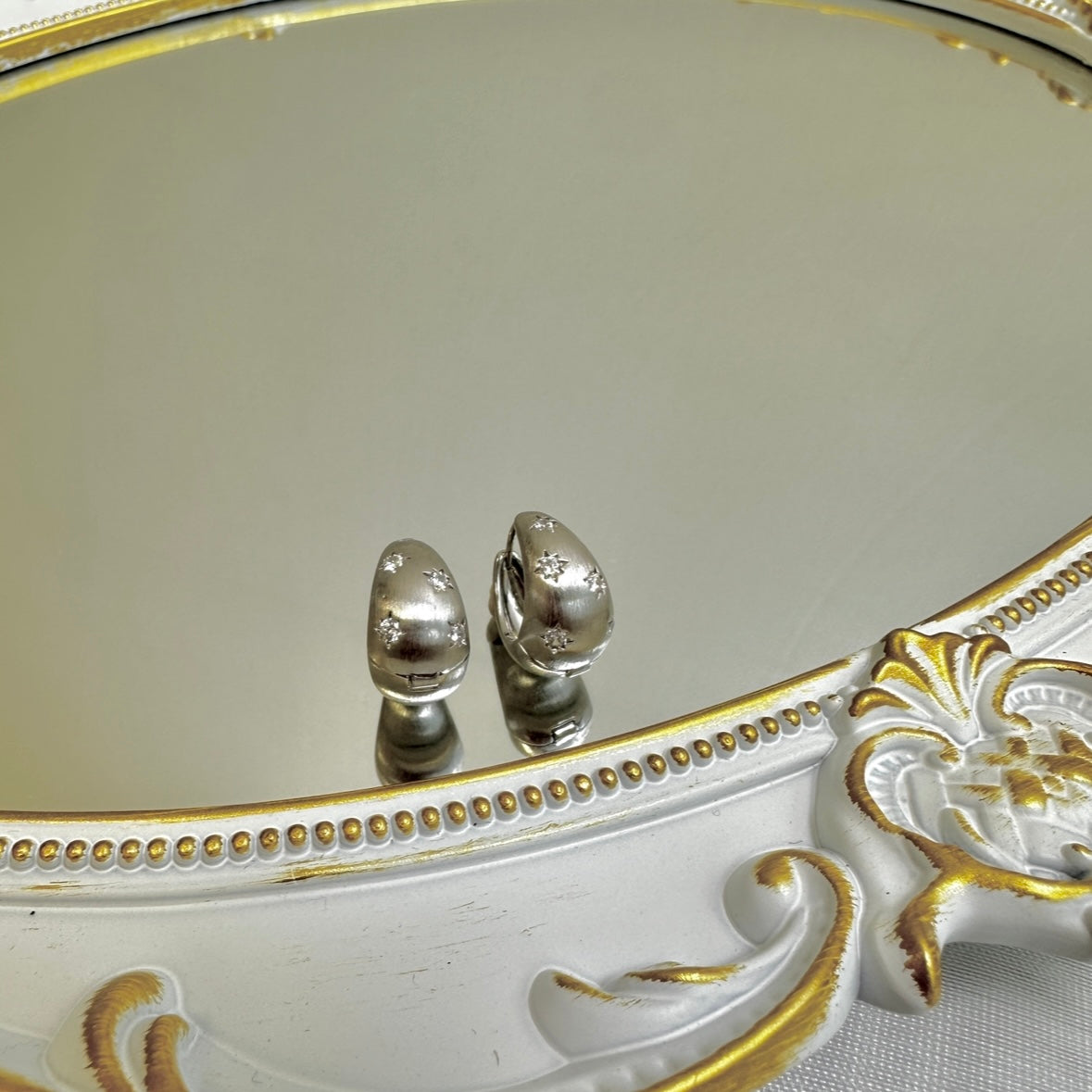 These dome-shaped earrings are like little night skies resting softly on your ears. Each one is delicately brushed with a matte finish, then adorned with hand-carved star motifs inlaid with sparkling zircon, creating a soft and dreamy glow from every angle. Available in silver and gold tones, they bring a subtle elegance perfect for both daily wear and special moments. Clip-on style for easy wear, even without pierced ears.